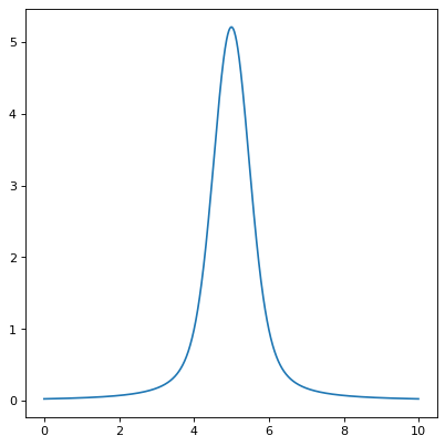 import numpy as np from astropy.modeling.models import Voigt1D import matplotlib.pyplot as plt plt.figure() x = np.arange(0, 10, 0.01) v1 = Voigt1D(x_0=5, amplitude_L=10, fwhm_L=0.5, fwhm_G=0.9) plt.plot(x, v1(x)) plt.show()