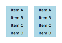 In the left-most case, the blue backgrounds can be drawn in one call and the two text elements in another call, as the texts only overlap a background which they are stacked in front of. In the right-most case, the background of "Item 4" overlaps the text of "Item 3" so in this case, each of backgrounds and texts needs to be drawn using separate calls.
